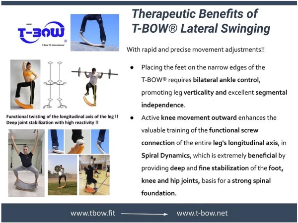 Η τοποθέτηση των ποδιών στα στενά άκρα του T-BOW® απαιτεί αμφίπλευρο έλεγχο της ποδοκνημικής, προάγοντας την «καθετότητα» των ποδιών και εξαιρετική τμηματική ανεξαρτησία.