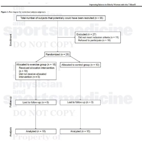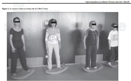 Μια συσκευή που αναπτύχθηκε πρόσφατα από την T-Bow® Switzerland (Sandra Bonacina και Viktor Denoth, Πανεπιστήμιο Ζυρίχης) (Σχήμα 1) αποτελείται από ένα πολυλειτουργικό «τόξο» που επιτρέπει μεγάλο εύρος ασκήσεων για ενδυνάμωση κάτω άκρων, ενίσχυση ειδικής ισορροπίας και βελτίωση γενικής δύναμης, ευλυγισίας και ευκινησίας. Υποθέτουμε ότι αυτή η συσκευή θα μπορούσε να αυξήσει τη γενική φυσική κατάσταση και τις ειδικές ικανότητες που σχετίζονται με την ισορροπία. Η επιστημονική γνώση σχετικά με τα οφέλη βελτίωσης ισορροπίας σε ηλικιωμένους με ασκήσεις φυσικής κατάστασης και ειδικές ασκήσεις ισορροπίας με T-Bow® είναι περιορισμένη. Σκοπός της μελέτης είναι να ποσοτικοποιήσει τις επιδράσεις ενός προγράμματος προπόνησης με T-Bow® στην ικανότητα διατήρησης ισορροπίας σε ομάδα υγιών ηλικιωμένων γυναικών.