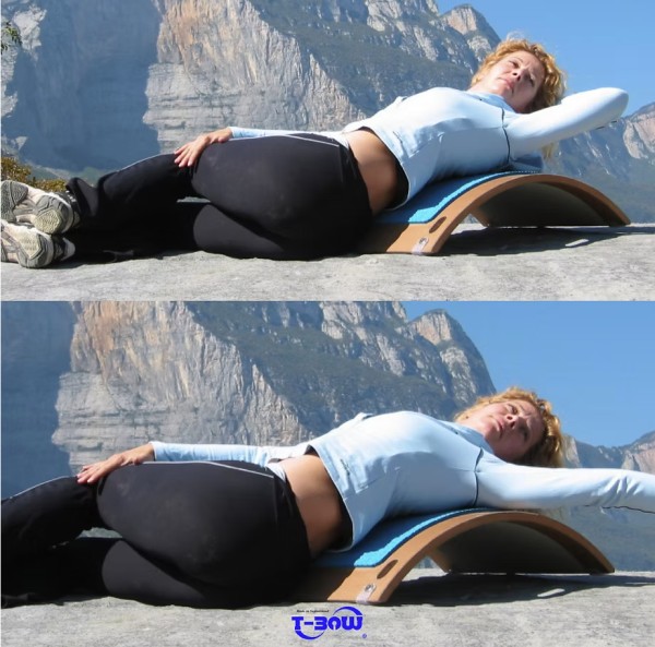 Πολλοί άνθρωποι που κάθονται πολλές ώρες εμφανίζουν μειωμένη ευκαμψία της οσφυϊκής λόρδωσης και αυξημένη επιβάρυνση στους μεσοσπονδύλιους δίσκους. Η απλή θέση ύπτιας κατάκλισης πάνω στο T-BOW® με ενεργοποίηση των κοιλιακών μυών βοηθά στην ορθή ευθυγράμμιση των σπονδύλων και προσφέρει επιπλέον χώρο στα σπλάχνα της κοιλιακής χώρας.